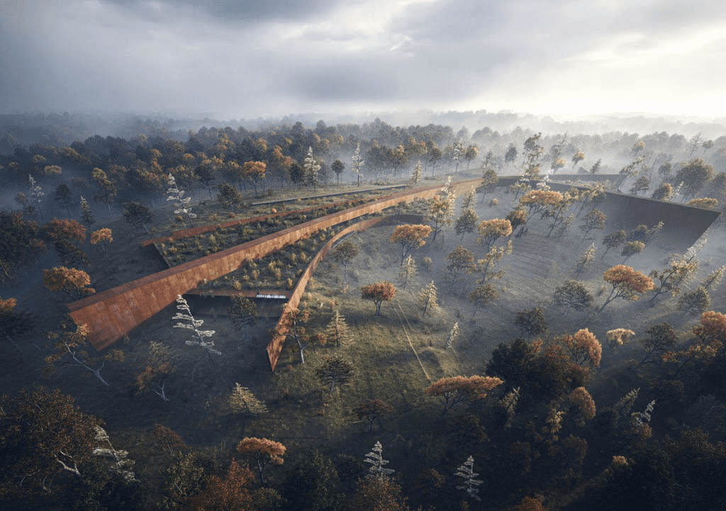 Competition Entry | Third prize Territorial Memory The memorial territory becomes Cer Mountain and its surrounding landscape, while the designed intervention emerges as a condensed field of collected memory. Memory represents cultural identification; designing memory becomes a model of identification, and memorialization a form of transcription. The Battle of Cer carries both national and global significance, marking the heroic defense of a smaller nation and symbolizing resistance to political and military hegemony. Its outcome remains a historic marker: the first Allied victory in the Great War. Defined as an artillery-maneuver battle, it demonstrated strategic intelligence overcoming numerical and technological superiority. The project interprets the landscape itself as the primary bearer of memory. Rather than imposing a singular object, the memorial unfolds across the terrain through a series of spatial interventions, each defined in relation to ground, horizon, and territory. “Below the ground” houses the museum galleries, preserving artifacts. “Along the ground” forms an educational and documentation center. “Above the ground” introduces horizontal viewpoints that frame the landscape and recall maneuver and distance. Ultimately, the ground itself becomes the enduring link between memory, nature, and time.