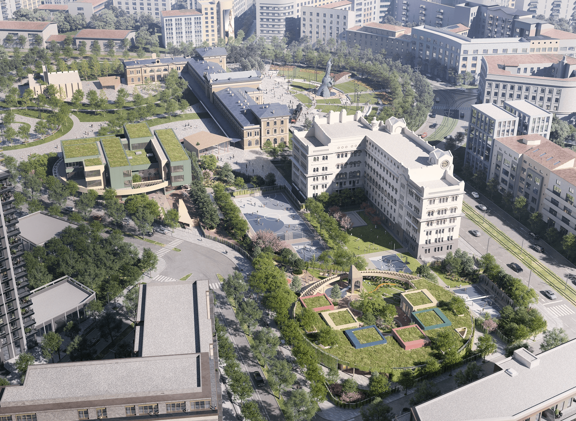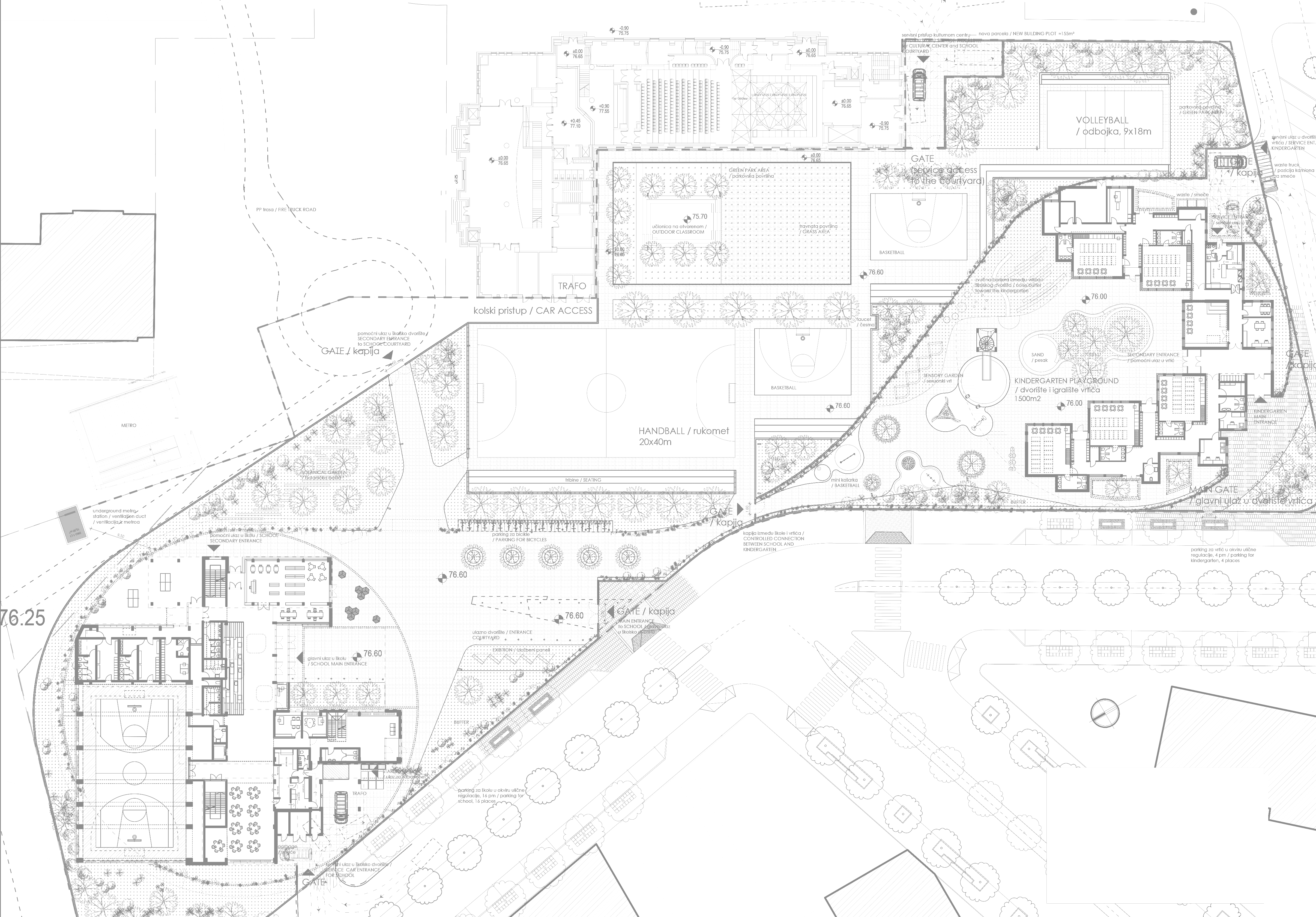 PRECONCEPT TO CONSTRUCTION Knowledge Loop is an educational campus composed of two independent buildings: a Primary School and a Preschool Facility.The buildings are conceived as freestanding pavilions, connected by a landscaped spatial structure: the “Loop.” They are strategically positioned to shield the campus from unfavorable external influences, including busy roads and surrounding high-rise structures, while ensuring optimal southeast orientation for classrooms. The Loop functions as an additional protective layer and, together with the perimeter treatment, landscape design, and greenery, creates high-quality conditions for both interior learning environments and outdoor courtyard spaces. The buildings are designed as free-form volumes that “float” within the site, seeking their position while, together with the Loop, generating a complex network of intermediate spaces. Certain segments of these interstitial areas are intentionally left undefined -conceived as flexible spaces that will gradually be activated by school activities over time. In this way, students become an integral part of the architecture, presenting their work through positive affirmation, which serves as a strong catalyst for personal development. SUb consultants: MASINOPROJEKT KOPRING AD -project development and bim Bitscapes & MAG - Archviz