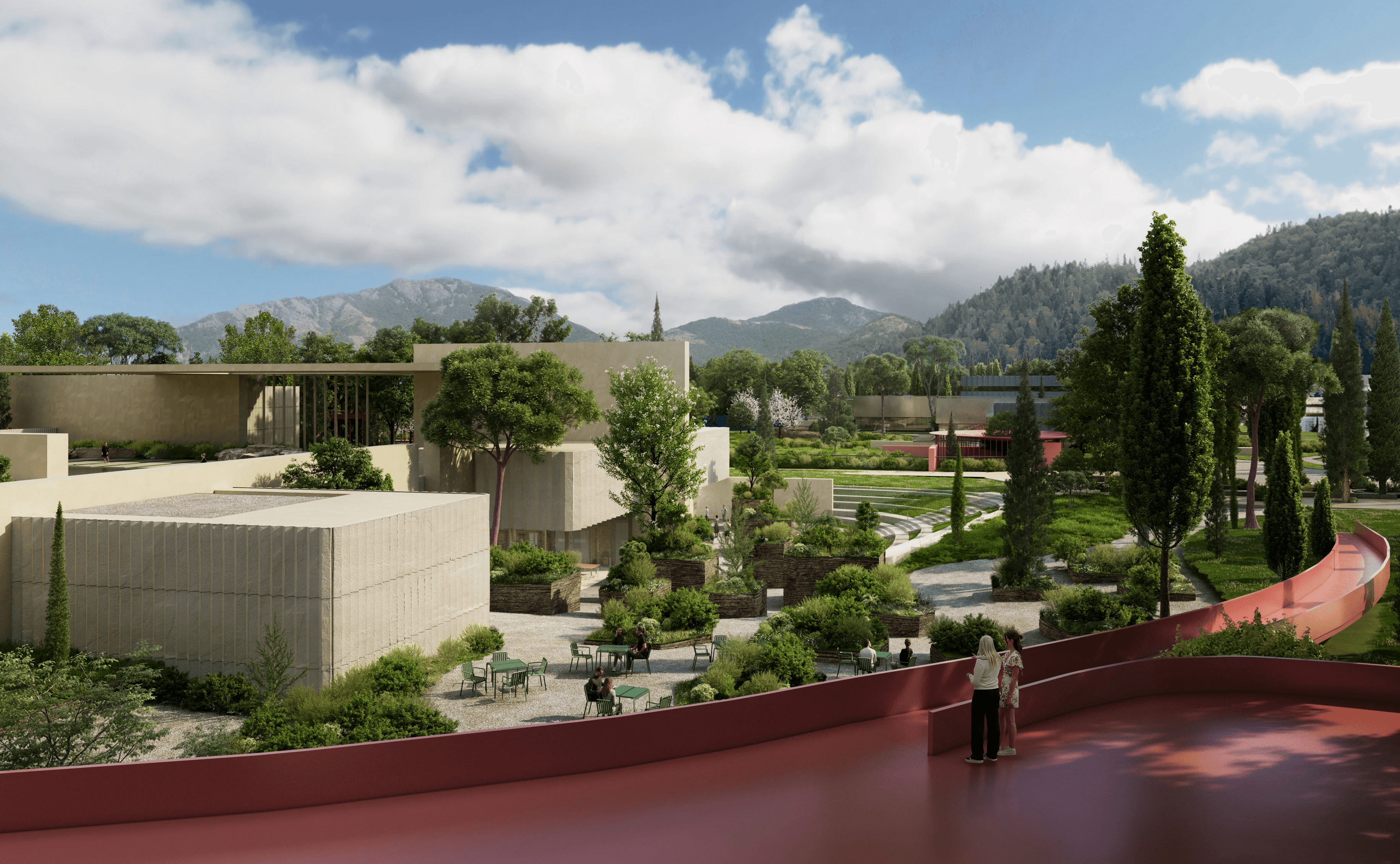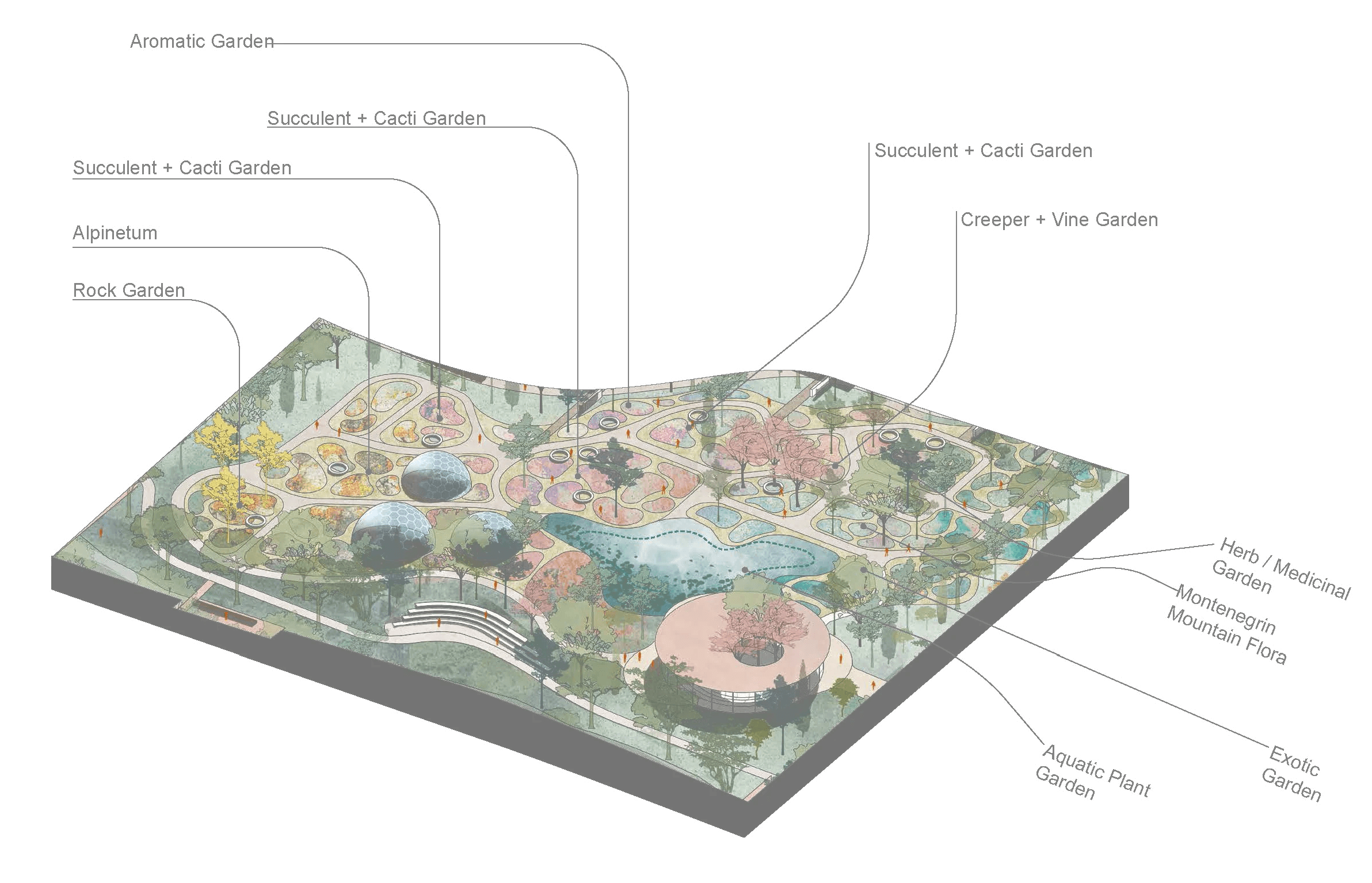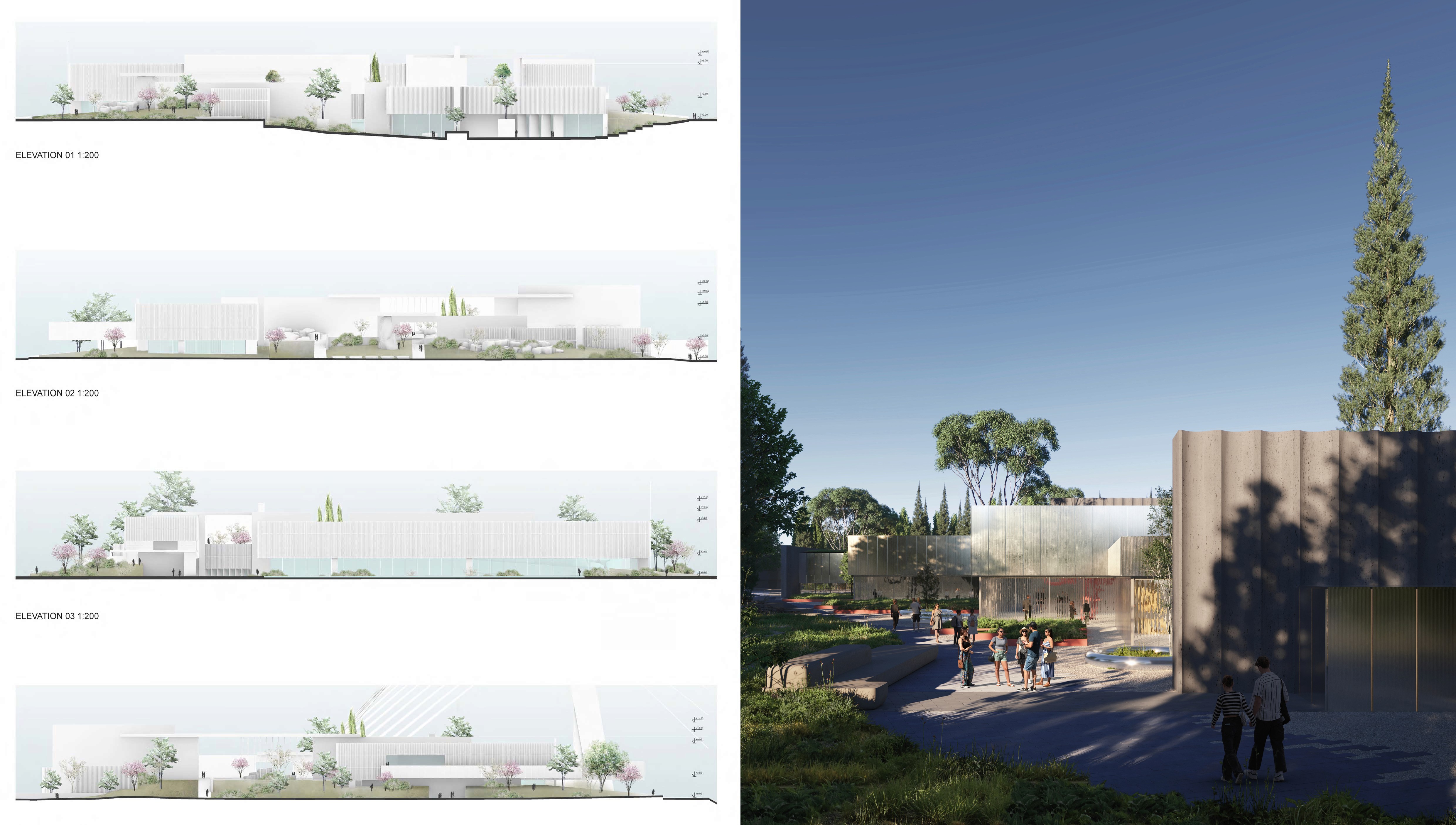 Invited Competition Our competition design revolves around the concept of merging landscape and architecture into a harmonious dance, guided by three main principles: Three Isles of Purpose: Where Nature’s Embrace is Unraveled with Singular Landscape Liaisons The Museum of Contemporary Art tenderly enfolds and invites nature within, the Natural History Museum cascades and intertwines with the verdant surroundings, while the Architecture House ascends gracefully, allowing nature’s embrace to flow beneath its wings. Verdant Rivulet: Linking Experiential Pathways Enhanced by Thoughtful Landscape Gestures, Ethereal Structures, and Coalescing Programmatic Narratives Botanic Oasis: The Heartbeat of Convergence between Architectural Grandeur and Nature’s Flourishing Embrace Sub-consultants: LJ Group (landscape architects)